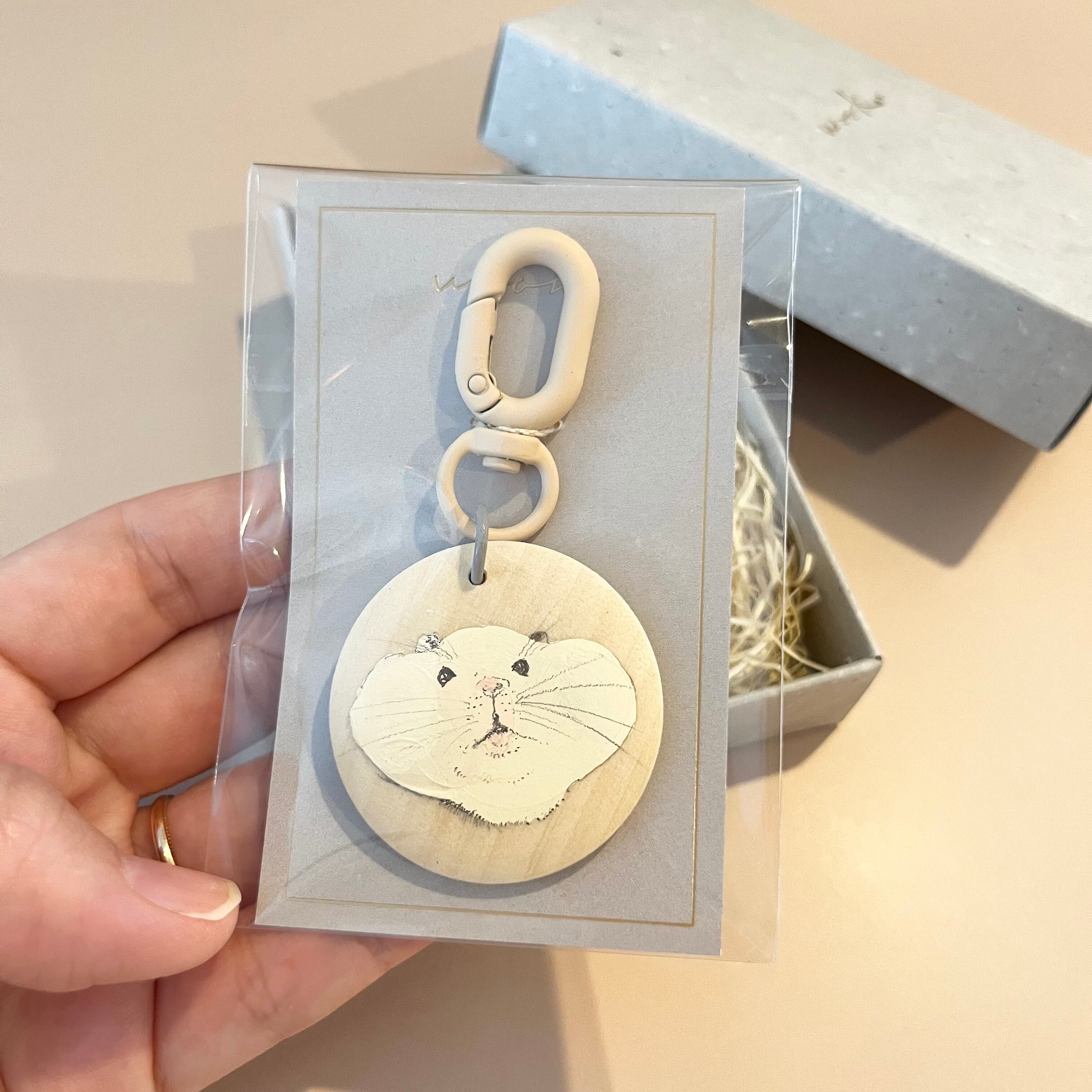 丸い木材パーツに、一つ一つ愛を込めて絵付けをしましたwook.の原画キーホルダーです。