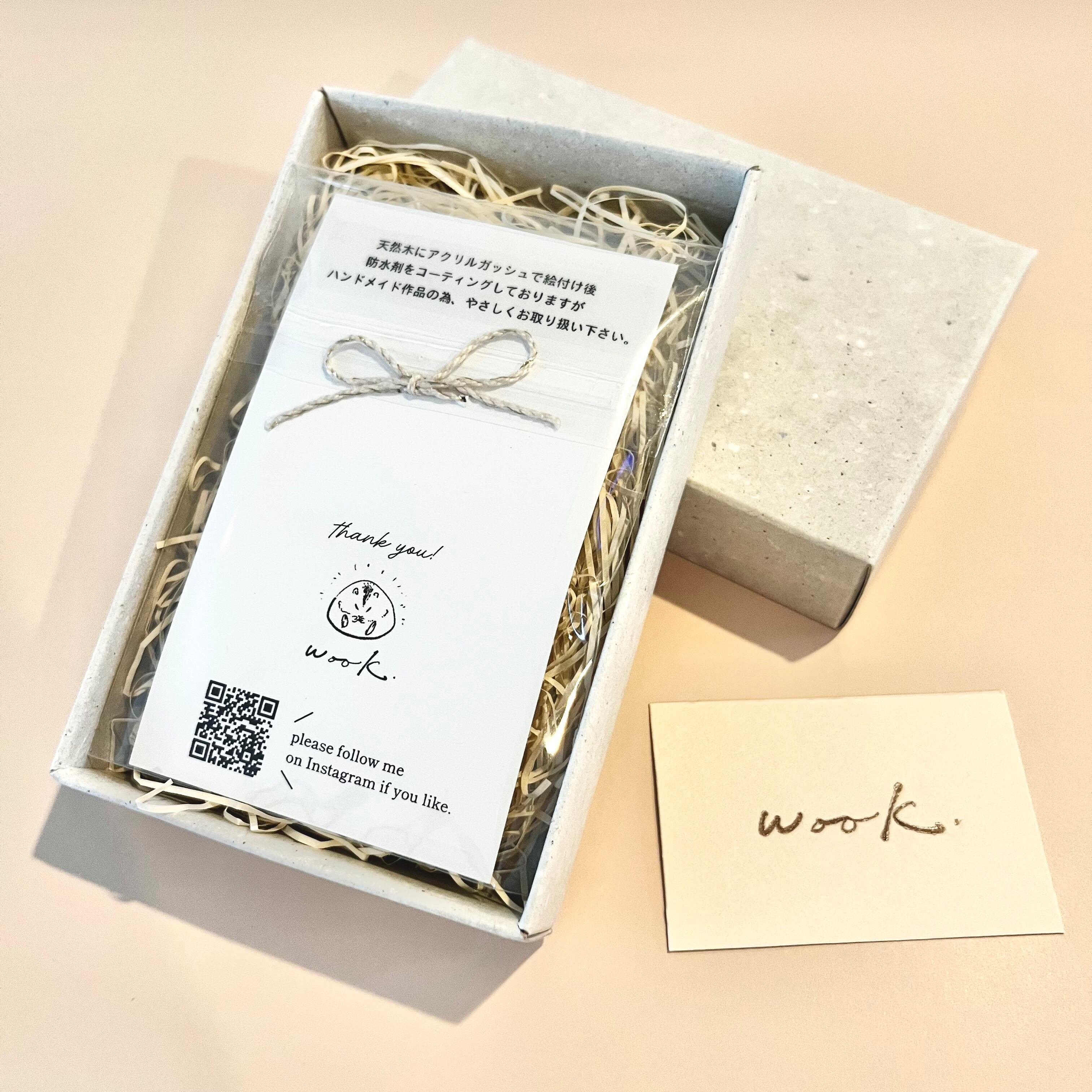 丸い木材パーツに、一つ一つ愛を込めて絵付けをしましたwook.の原画キーホルダーです。